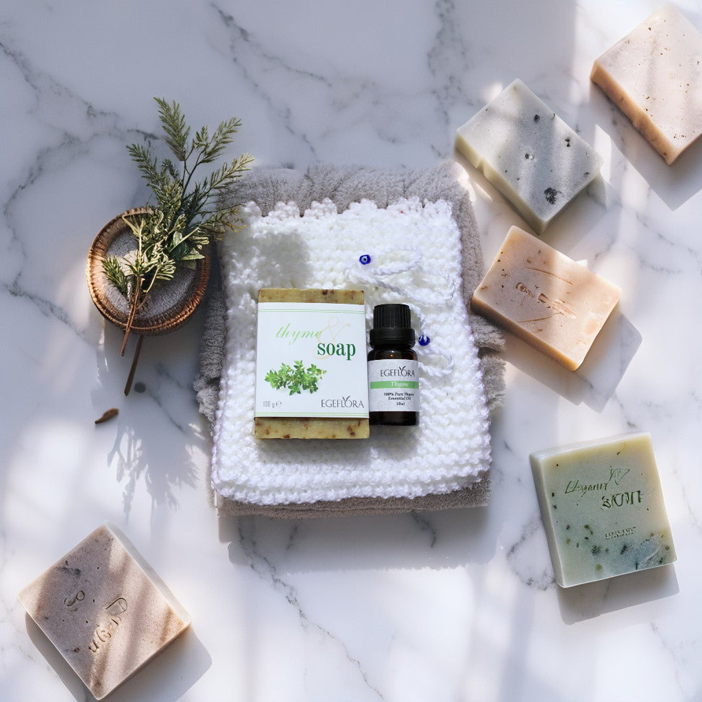 Olive Oil Thyme Soap, Pure Thyme Essential Oil and Cotton White Washcloth Mothers Day Gift Set